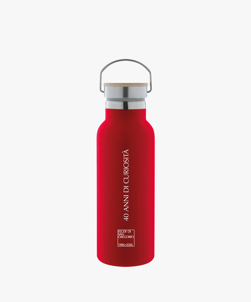 1 Red Thermal bottle 500 ml with bamboo lid and handle.