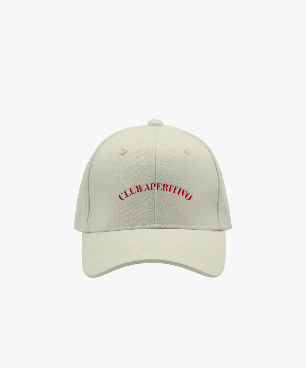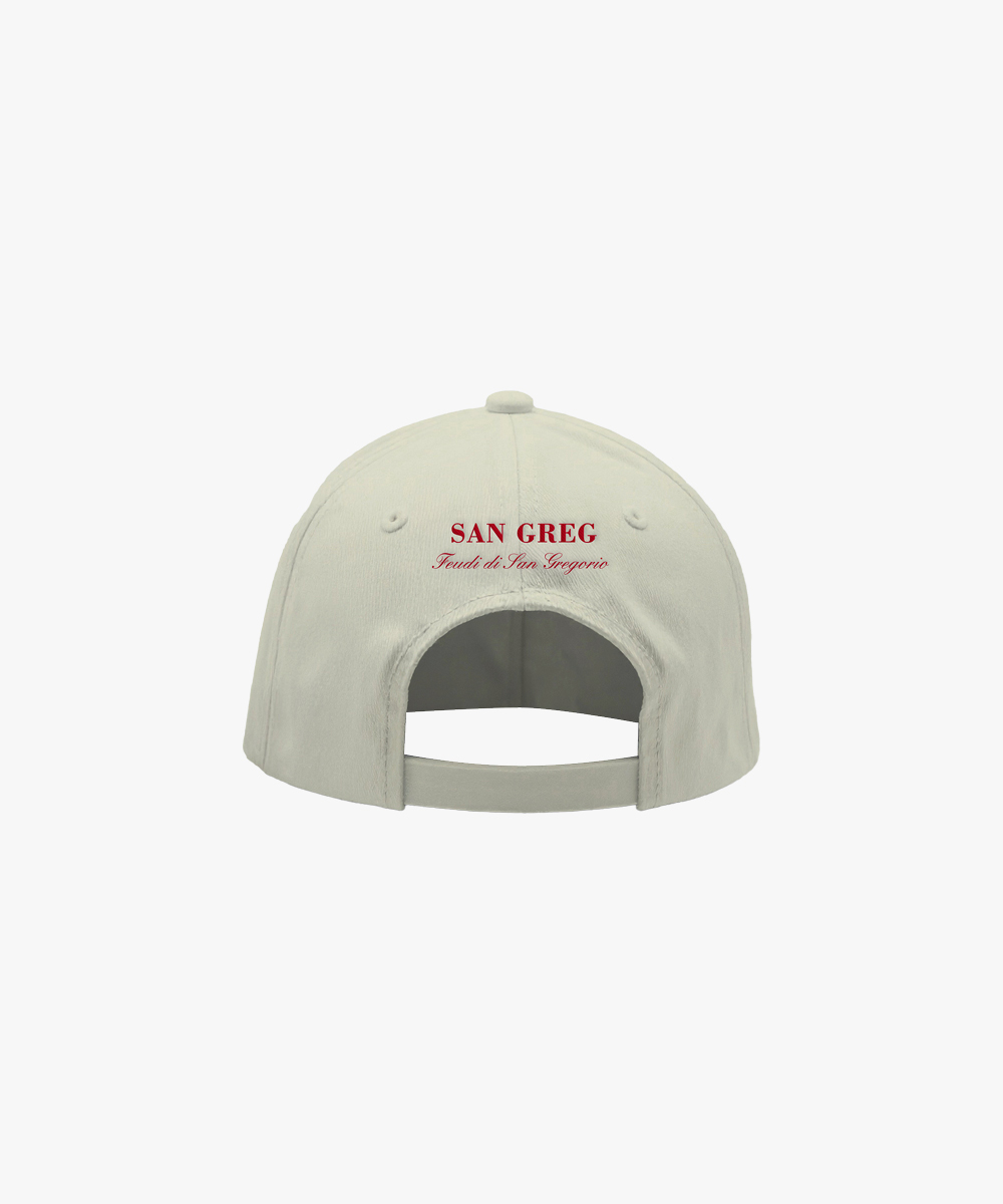 1 Cappello di colore Vintage sand con visiera brandizzato con ricamo sul fronte Club aperitivo e sul retro San Greg Feudi di San Gregorio.